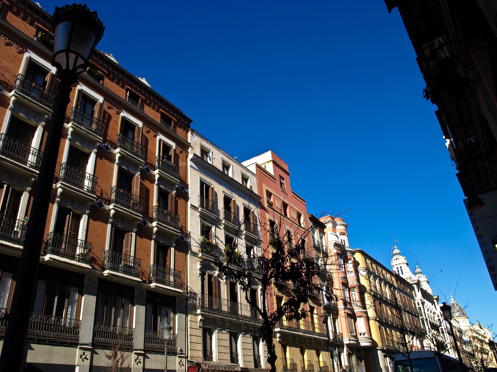 Houses lining a street in Madrid.